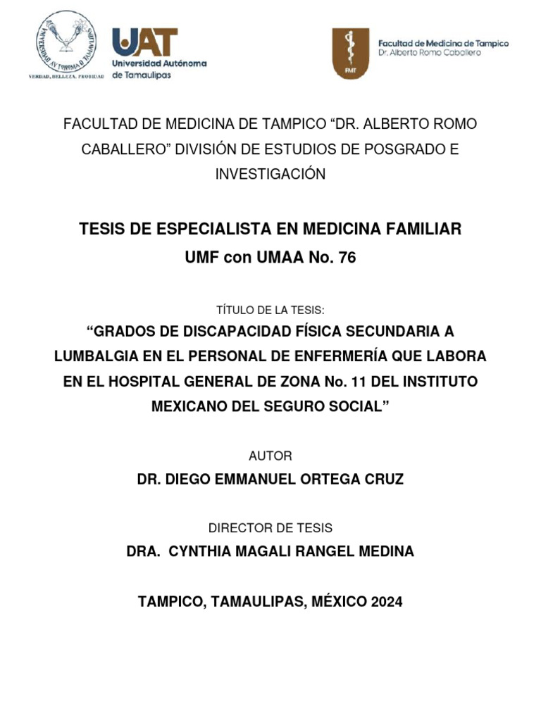 “GRADOS DE DISCAPACIDAD FÍSICA SECUNDARIA A LUMBALGIA EN EL