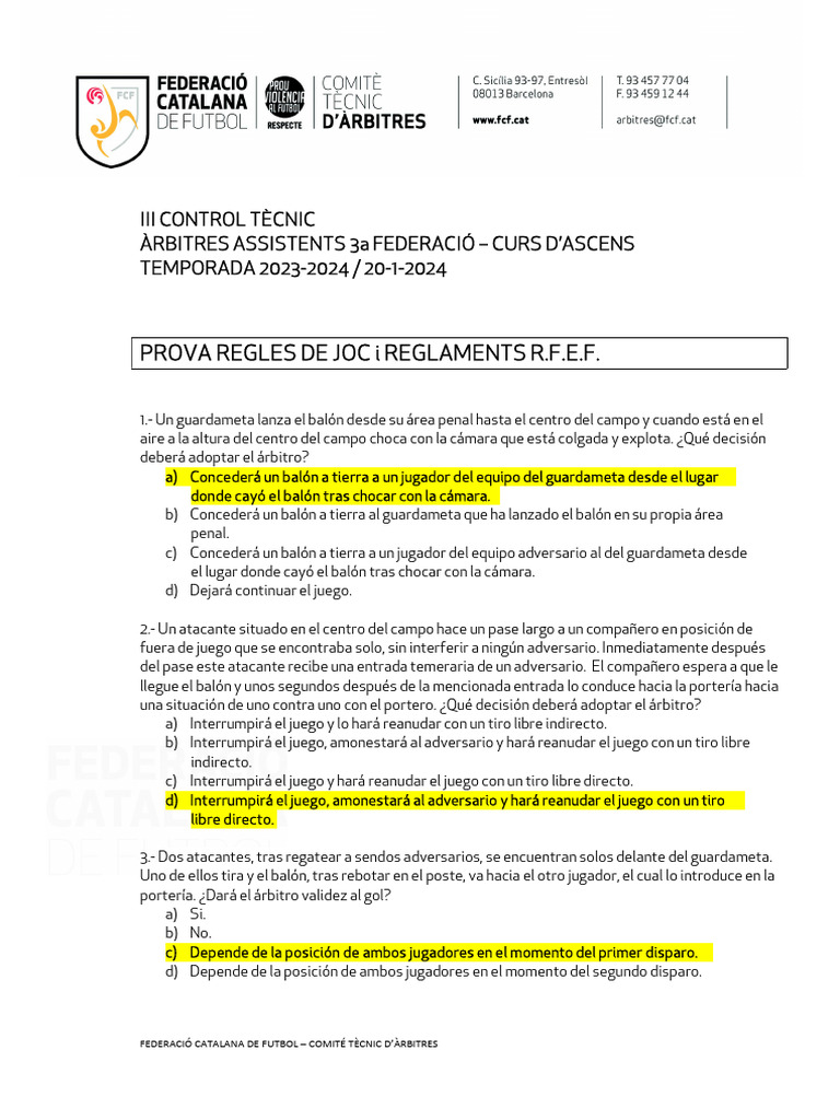 FEDERACIÓ CATALANA DE FUTBOL – COMITÉ TÈCNIC D’ÀRBITRES