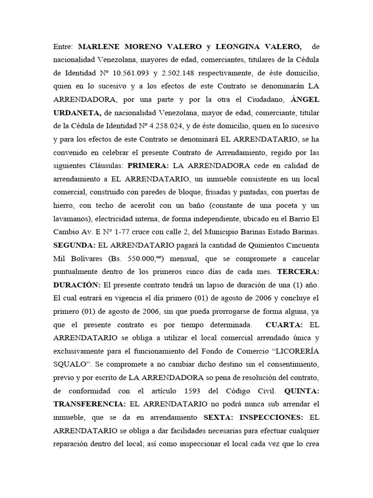 URDANETA, de nacionalidad Venezolana, mayor de edad, comerciante, titular