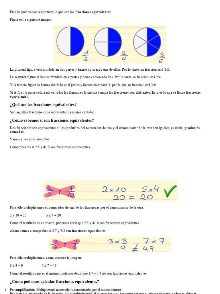En este post vamos a aprender lo que son las fracciones equivalentes.