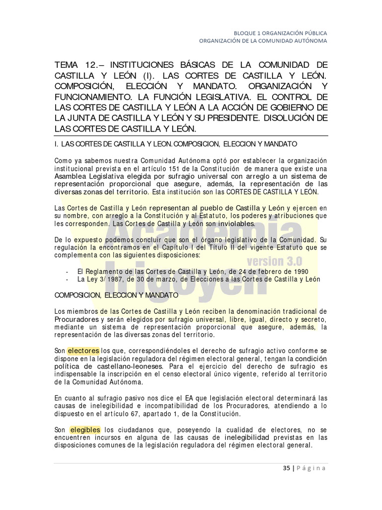 las Cortes de Castilla y León así como para el desarrollo de la legislación básica
