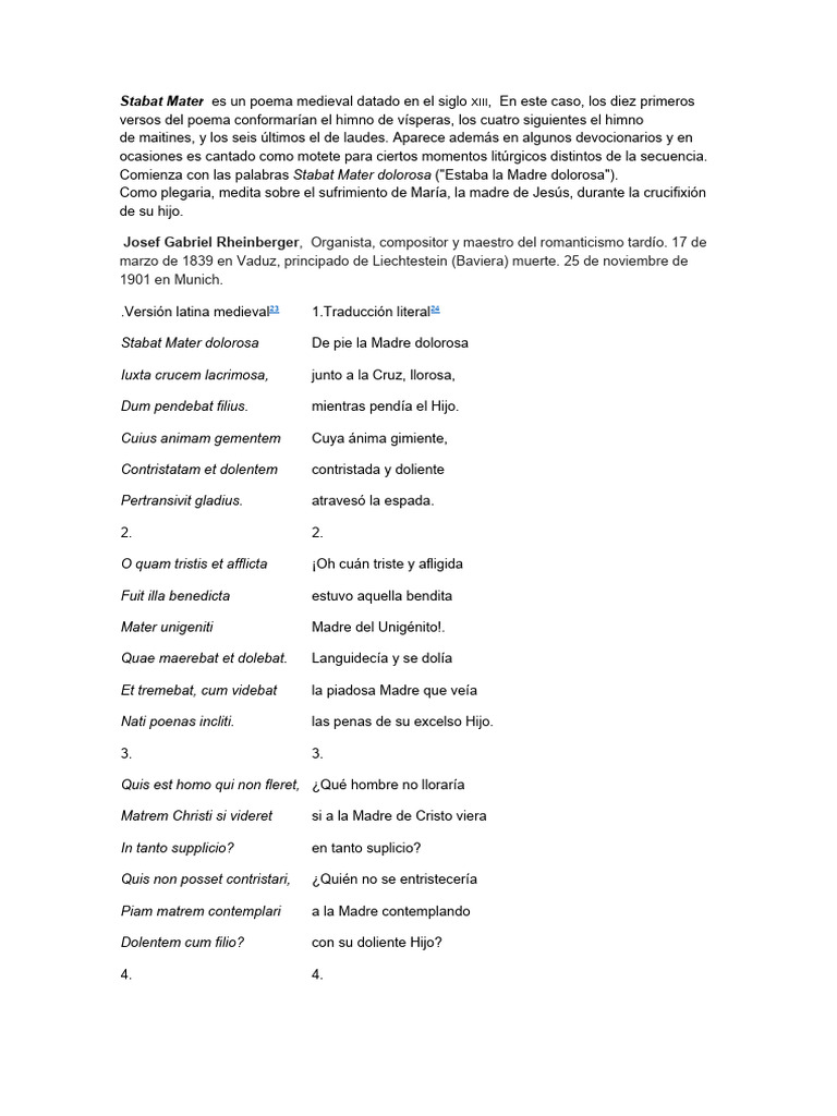Stabat Mater es un poema medieval datado en el siglo XIII, En este caso, los diez primeros
