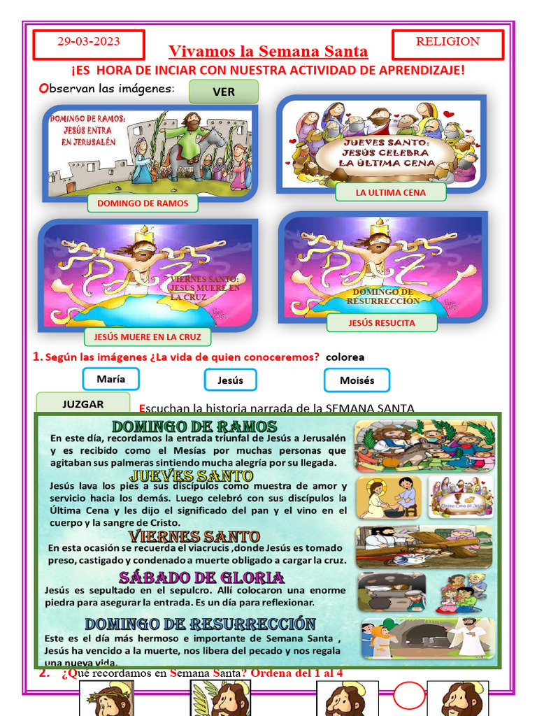 2. ¿Qué recordamos en Semana Santa? Ordena del 1 al 4