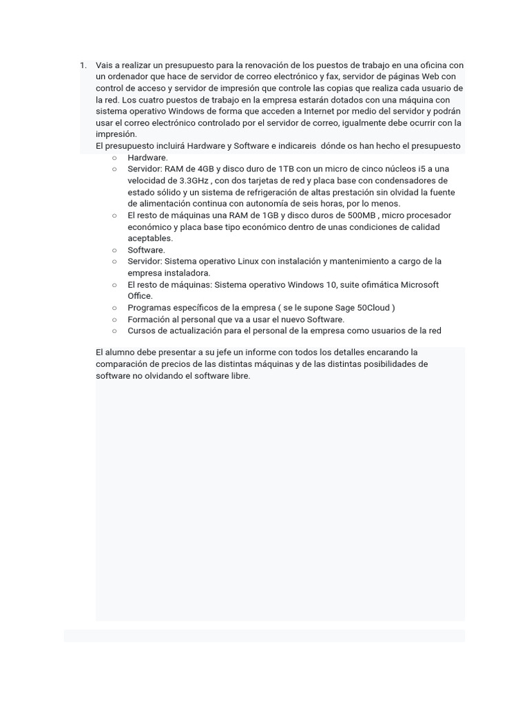 El presupuesto incluirá Hardware y Software e indicareis dónde os han hecho el presupuesto
