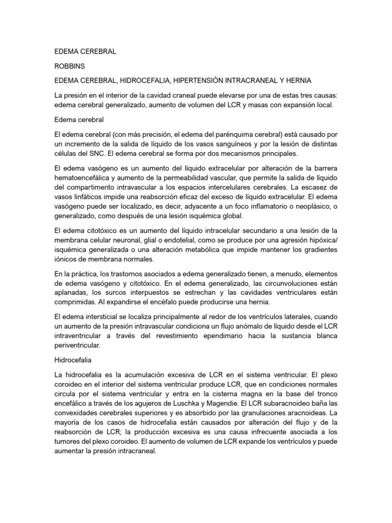 las infecciones y las alteraciones metabólicas. El edema vasógeno habitualmente se