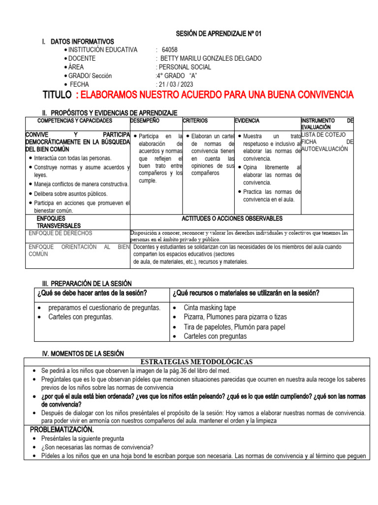 TITULO : ELABORAMOS NUESTRO ACUERDO PARA UNA BUENA CONVIVENCIA