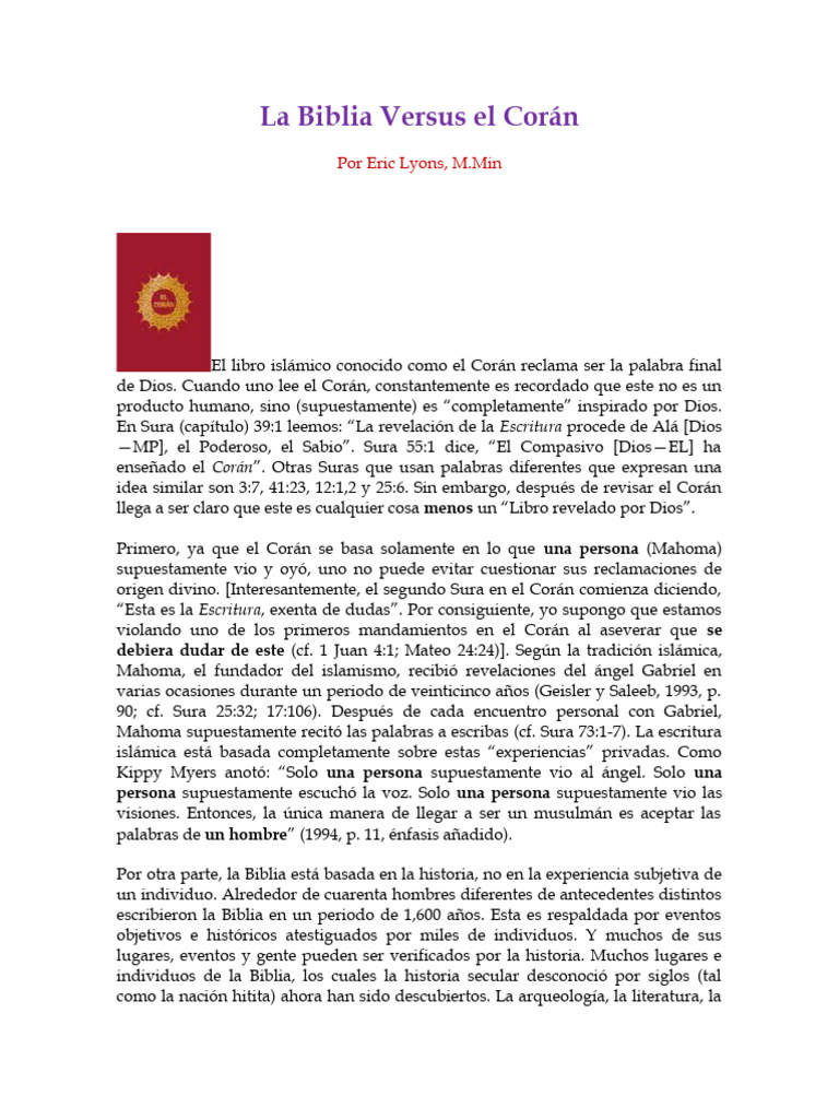 Otro problema principal con el Corán es que este presenta a la Biblia como