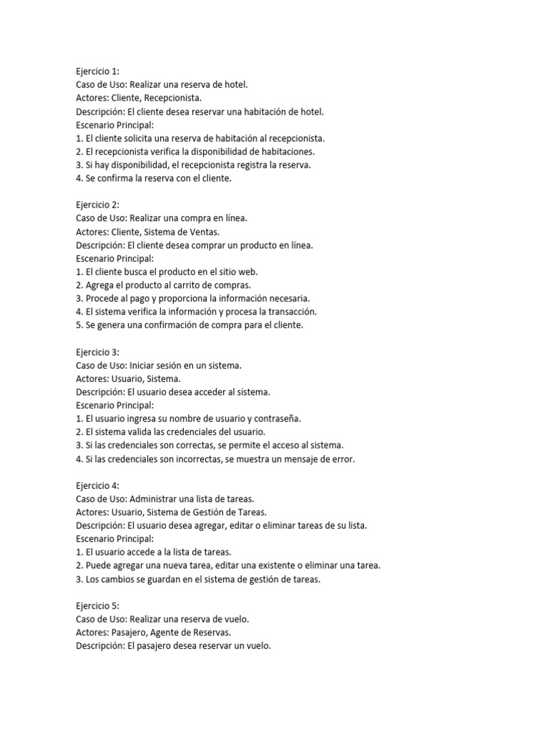 ¡Claro! Aquí te dejo más ejercicios sobre casos de uso en la ingeniería de software: