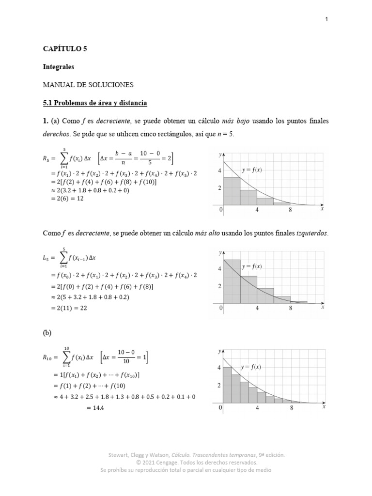 1. (a) Como f es decreciente, se puede obtener un cálculo más bajo usando los puntos finales