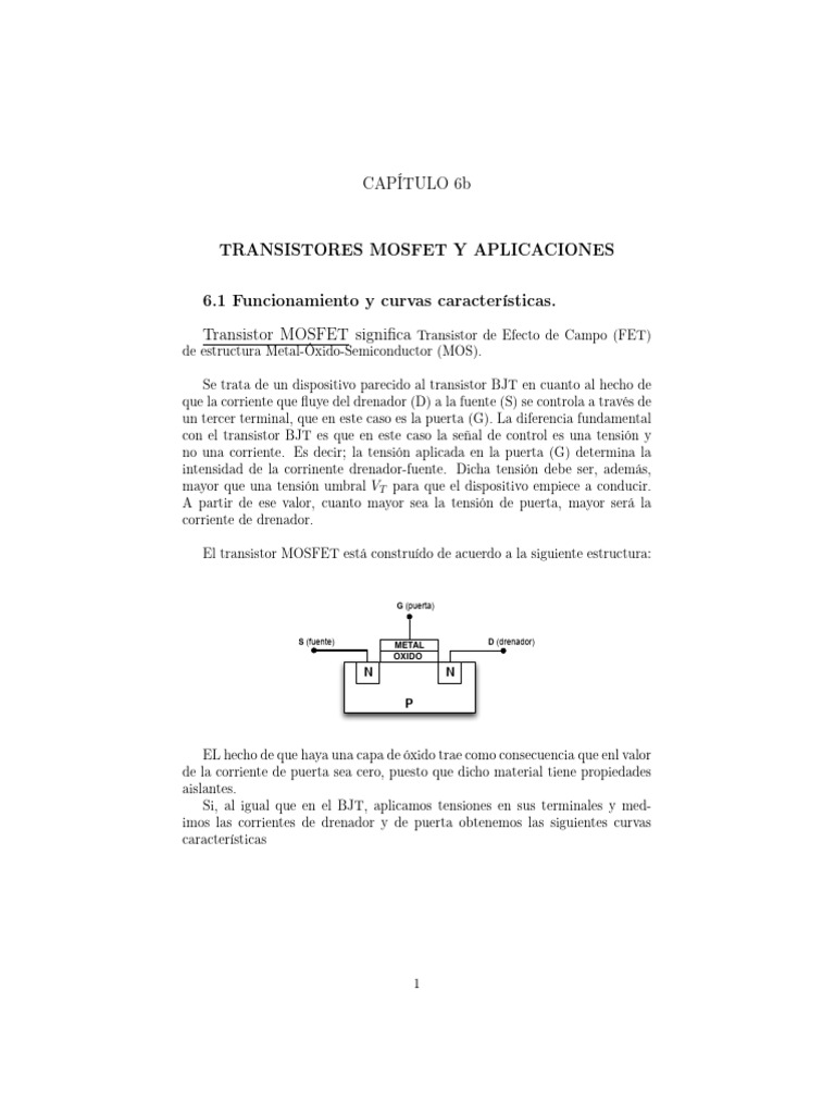 como hemos dicho, la corriente de puerta es cero. Con respecto a las caracterís-
