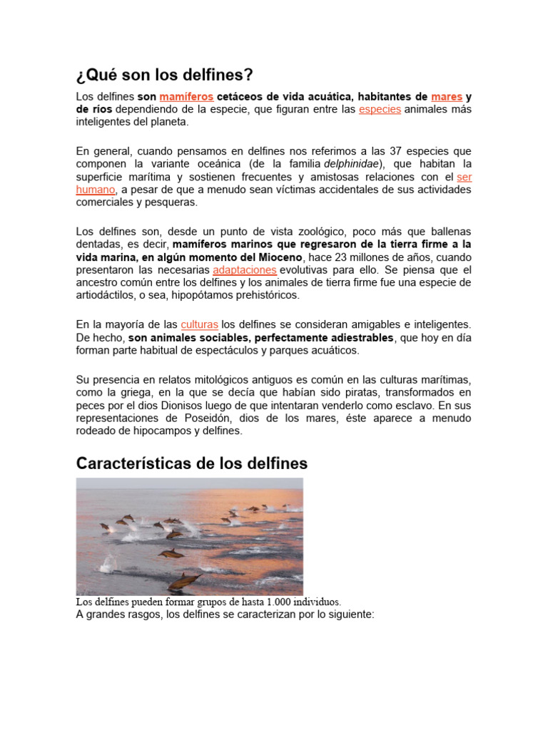 A grandes rasgos, los delfines se caracterizan por lo siguiente:
