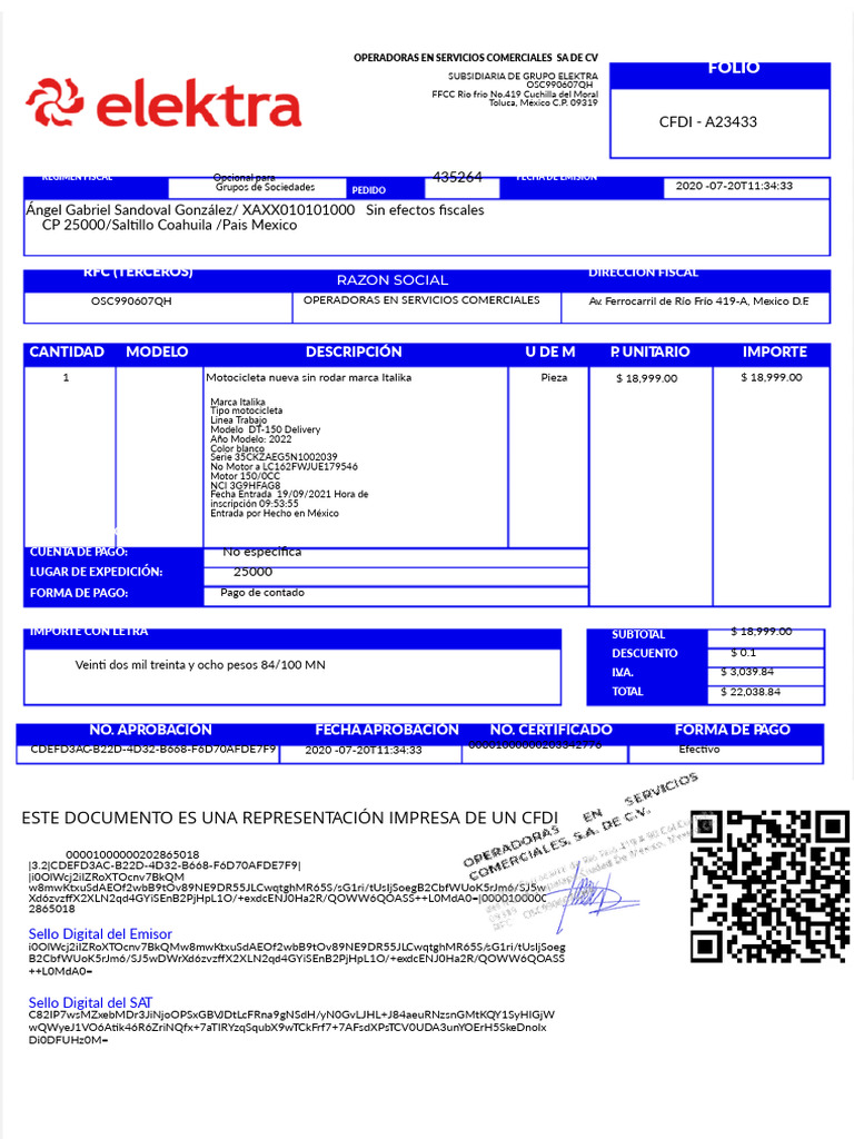 Ángel Gabriel Sandoval González/ XAXX010101000 Sin efectosPEDIDO