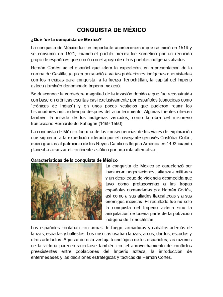 invadían. Uno de ellos fue Hernán Cortés, quien tuvo a su cargo la conquista de