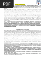 cultural, la lengua escrita, por lo que el modo de desarrollar la alfabetización y la forma de emplear las