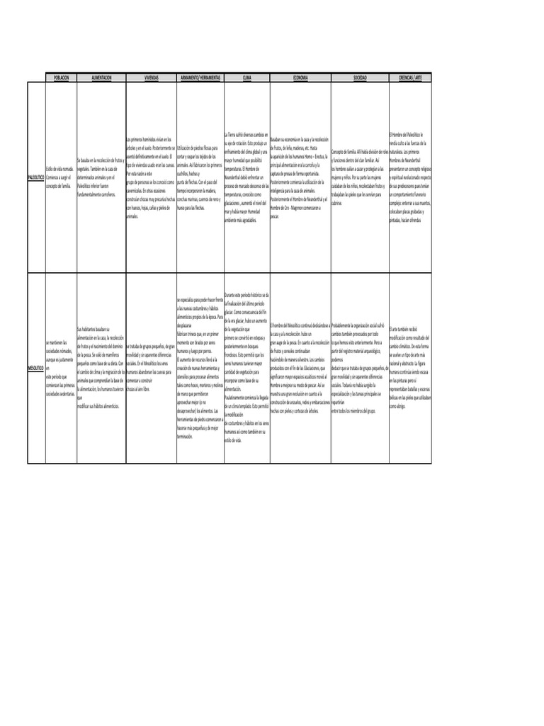 POBLACION ALIMENTACION VIVIENDAS ARMAMENTO/ HERRAMIENTAS CLIMA ECONOMIA SOCIEDAD CREENCIAS / ARTE