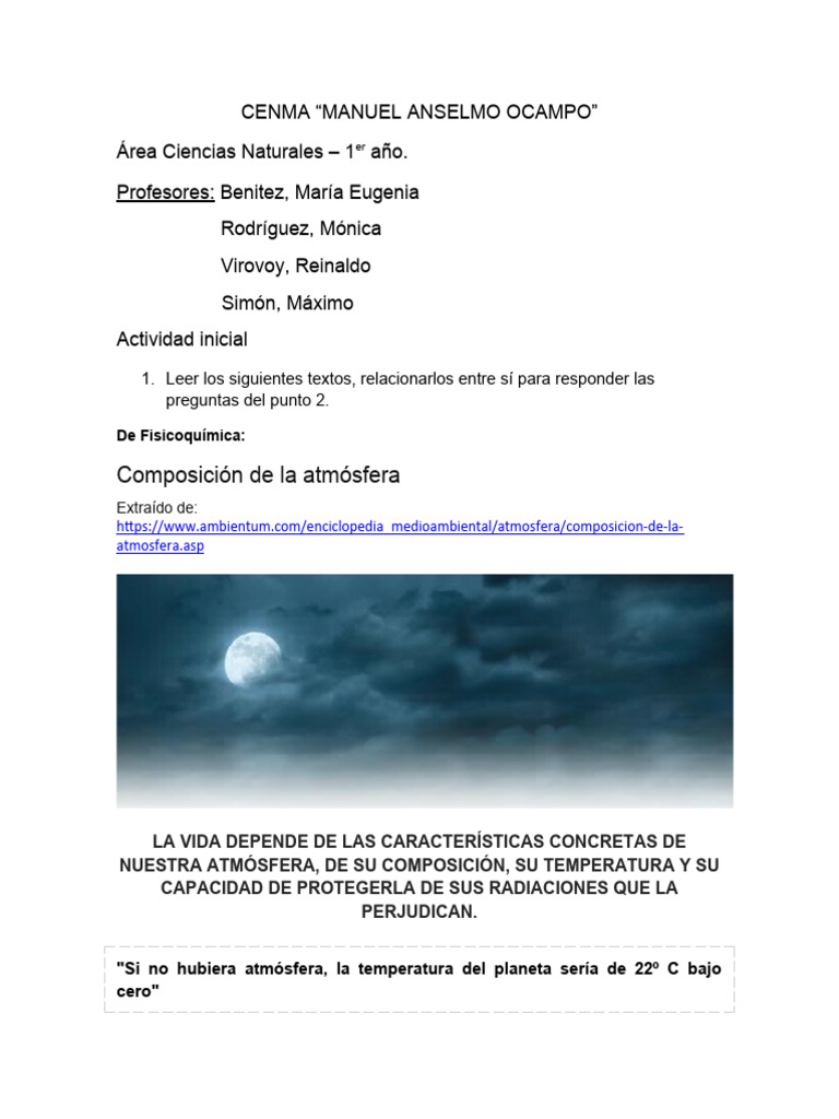 a. ¿Qué características fisicoquímicas de la atmósfera les parece que