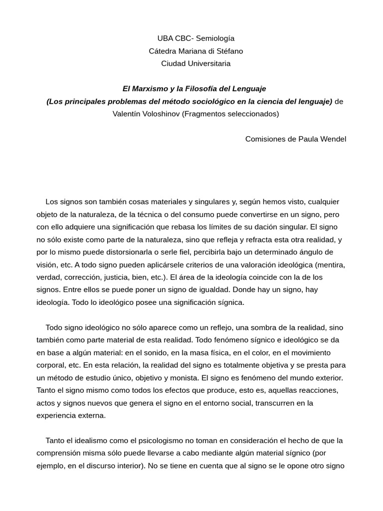 Todo signo ideológico, incluyendo el verbal, al plasmarse en el proceso de la