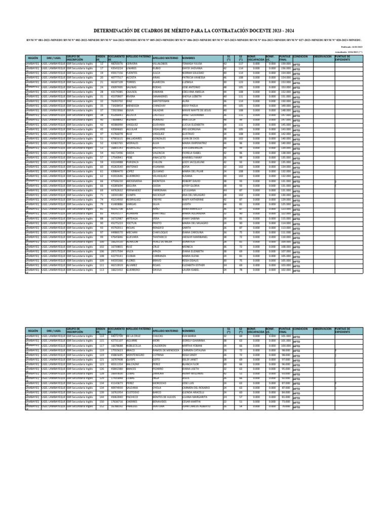LAMBAYEQ UGEL LAMBAYEQUE EBR Secundaria Inglés 35 73428454 MENDOZA CHINCHAY DEISY PAOLA 44 105 0.000 0.000 149.000 APTO