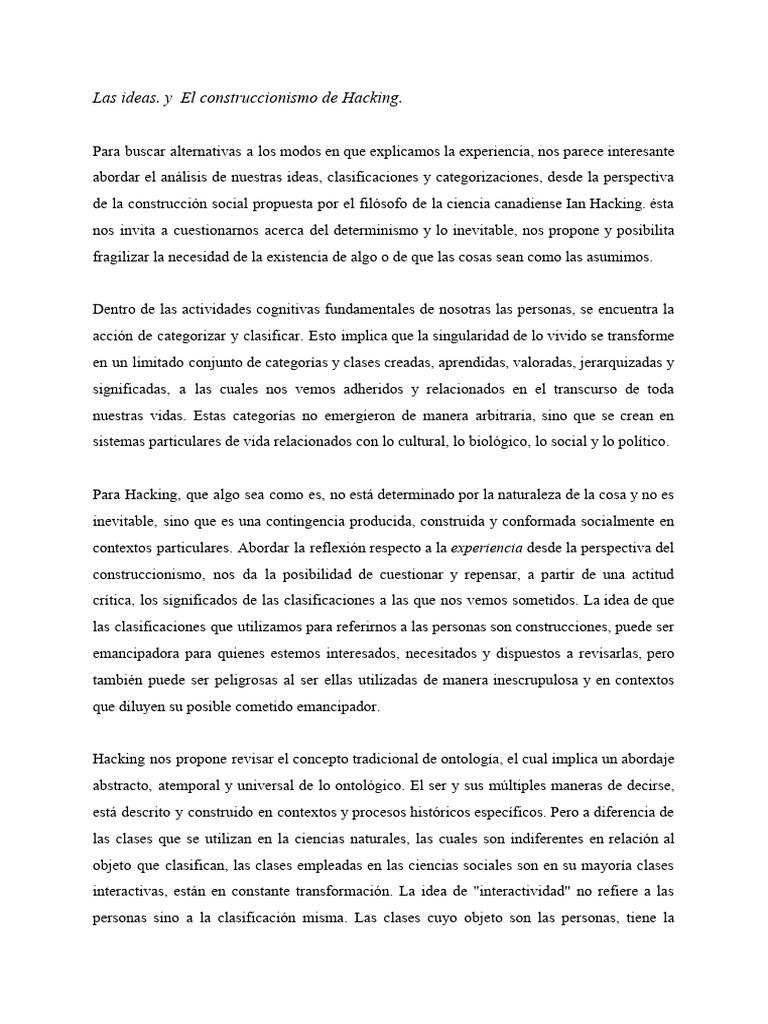 Las ideas. y El construccionismo de Hacking.