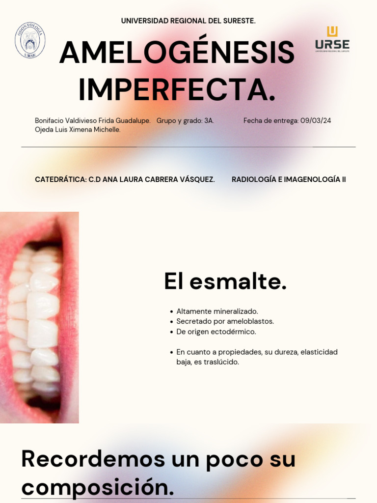 imperfecta. En su forma severa puede haber escazes de esmalte y en aspecto