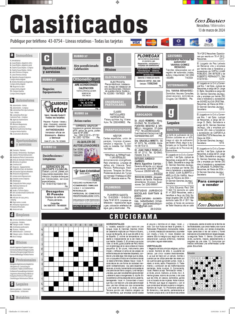 y Genoud Tel: 2262 - 527504 Pte. Cartas españolas, unión de Edictos Judiciales es un 40% Marzo de 2024 .-