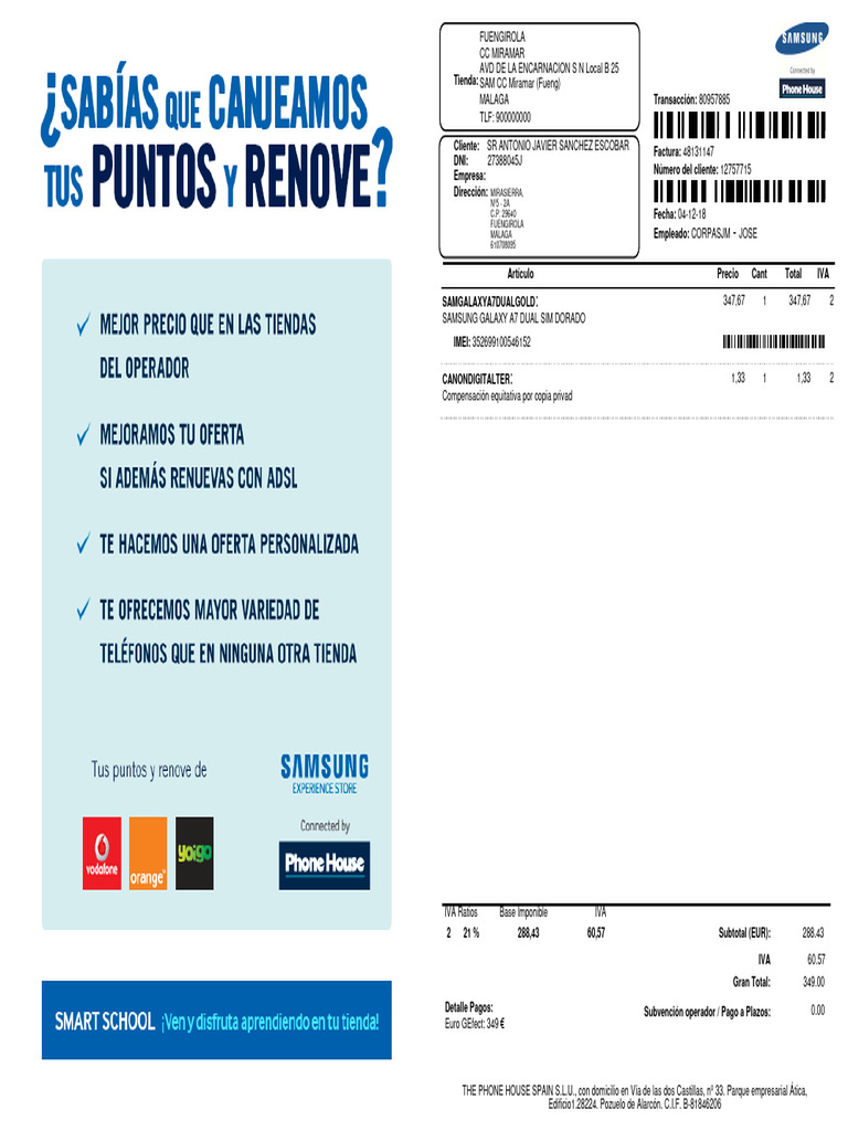 se llevará a efecto mediante la entrega al cliente de un vale de dinero The Phone House que podrá canjear por algún producto a lo largo de los seis meses