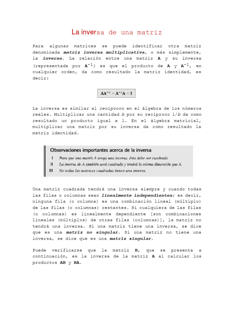 Una matriz cuadrada tendrá una inversa siempre y cuando todas