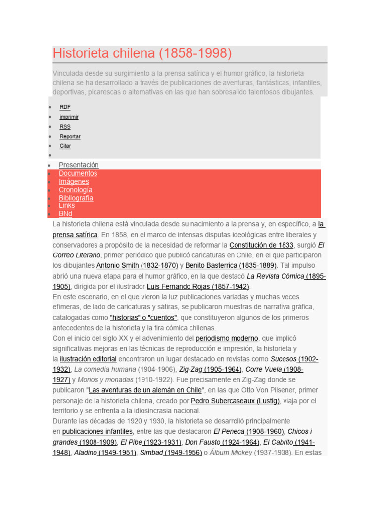 La historieta chilena está vinculada desde su nacimiento a la prensa y, en específico, a la