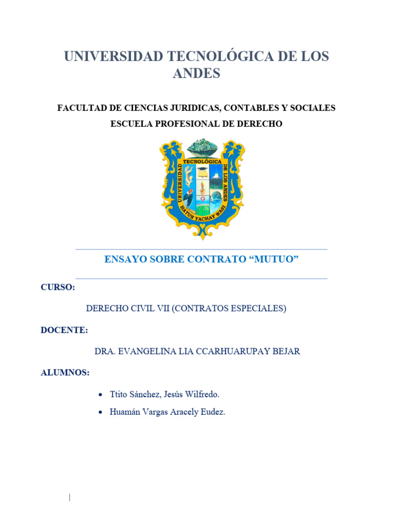 ENSAYO SOBRE CONTRATO “MUTUO”