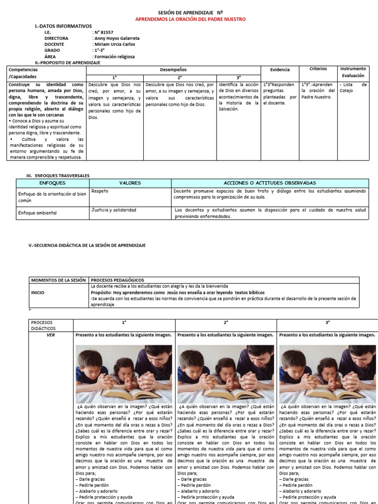 digna, libre y trascendente, imagen y semejanza, y valora sus características acontecimientos de planteadas por Padre Nuestro.