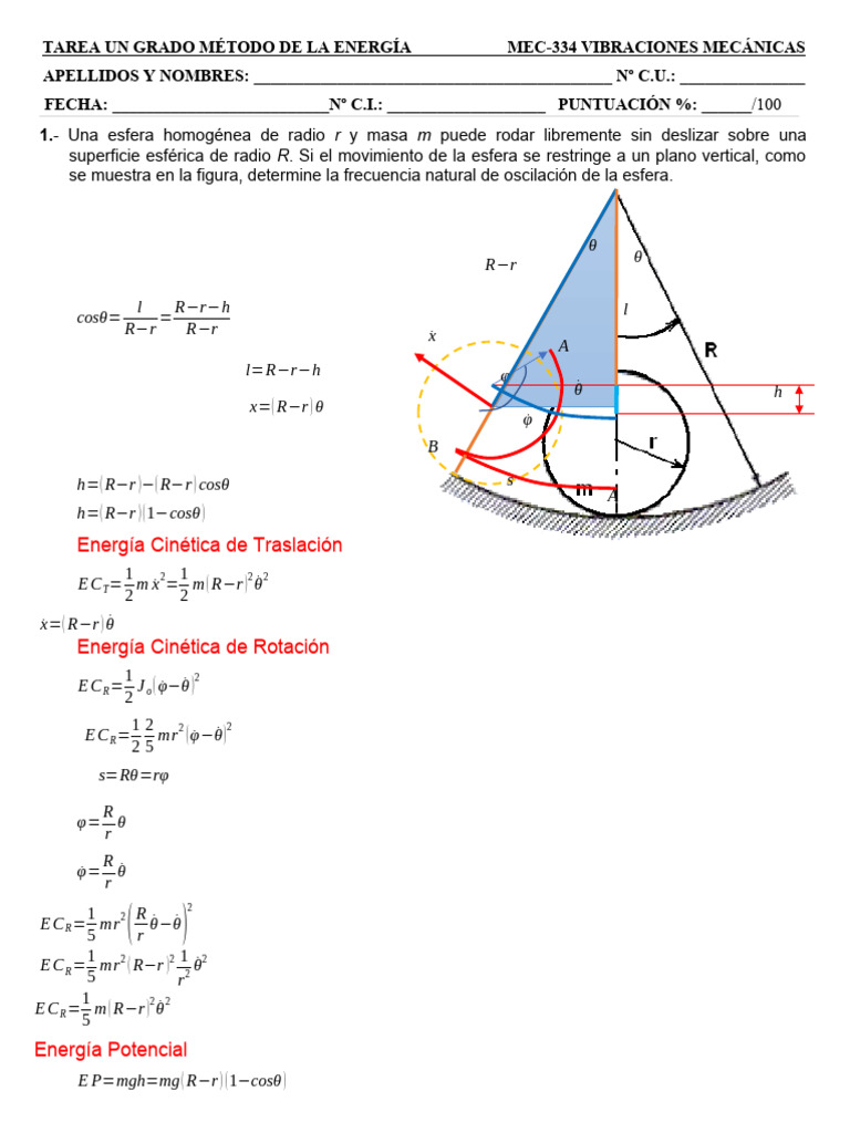 TAREA UN GRADO MÉTODO DE LA ENERGÍA MEC-334 VIBRACIONES MECÁNICAS