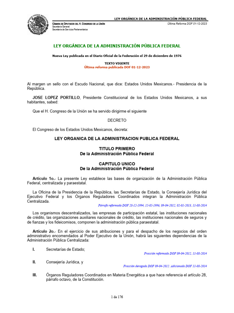 LEY ORGÁNICA DE LA ADMINISTRACIÓN PÚBLICA FEDERAL