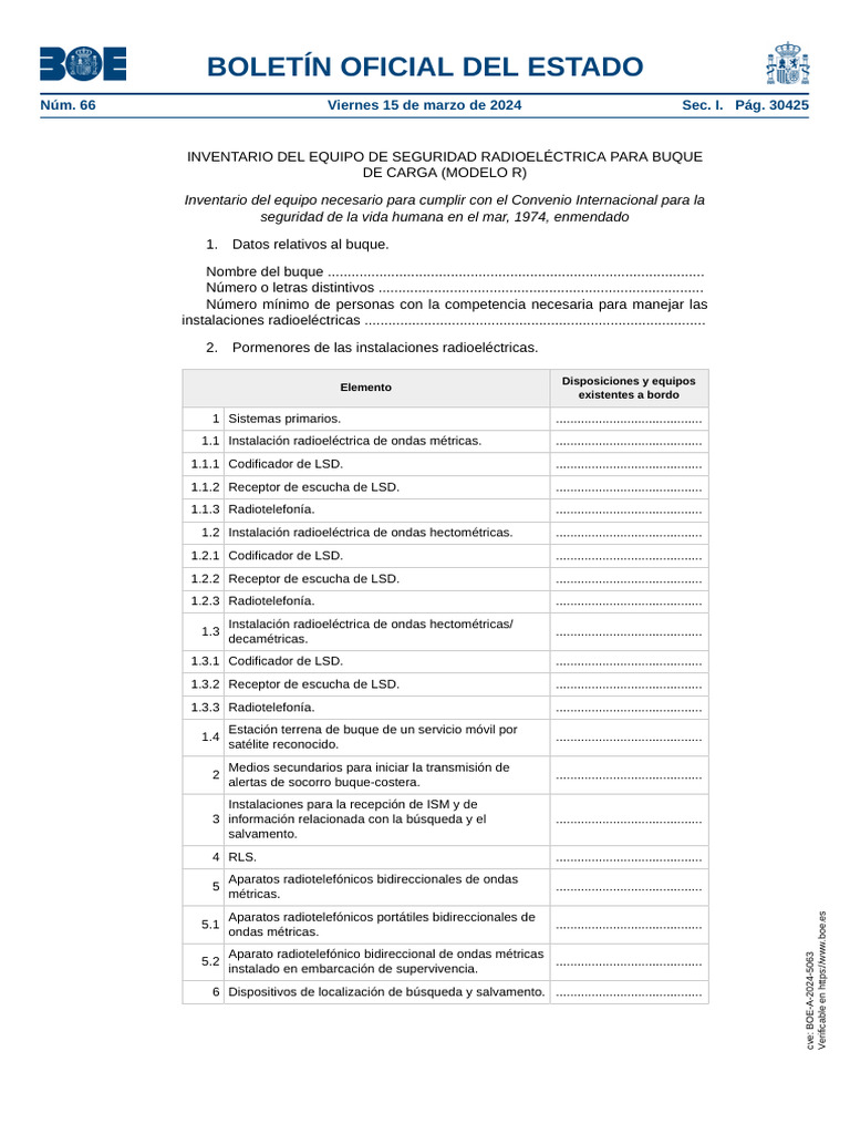 INVENTARIO DEL EQUIPO DE SEGURIDAD RADIOELÉCTRICA PARA BUQUE