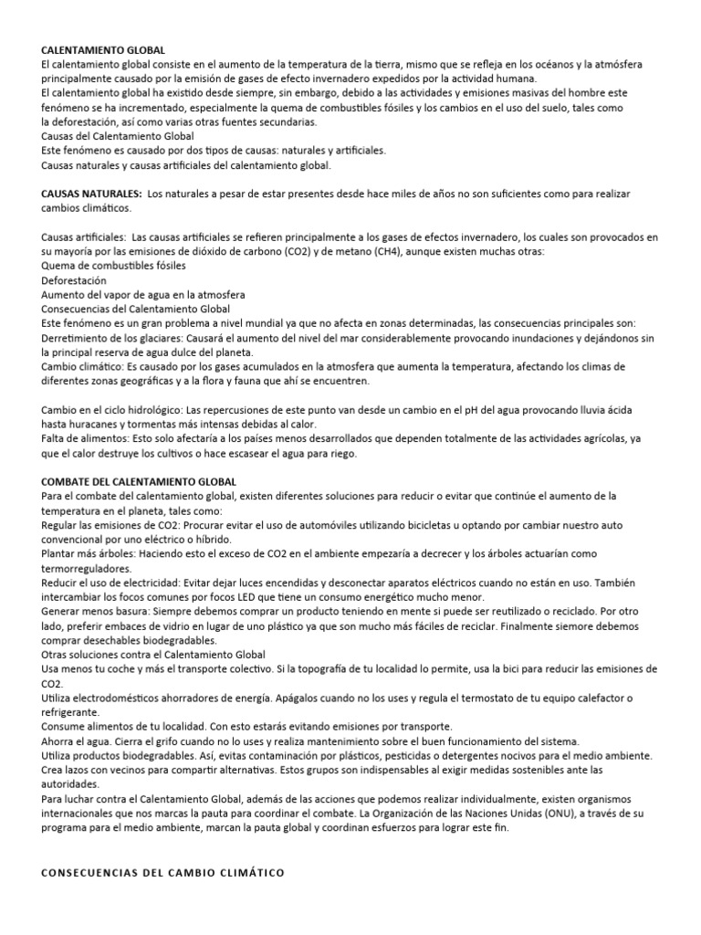 El calentamiento global consiste en el aumento de la temperatura de la tierra, mismo que se refleja en los océanos y la atmósfera