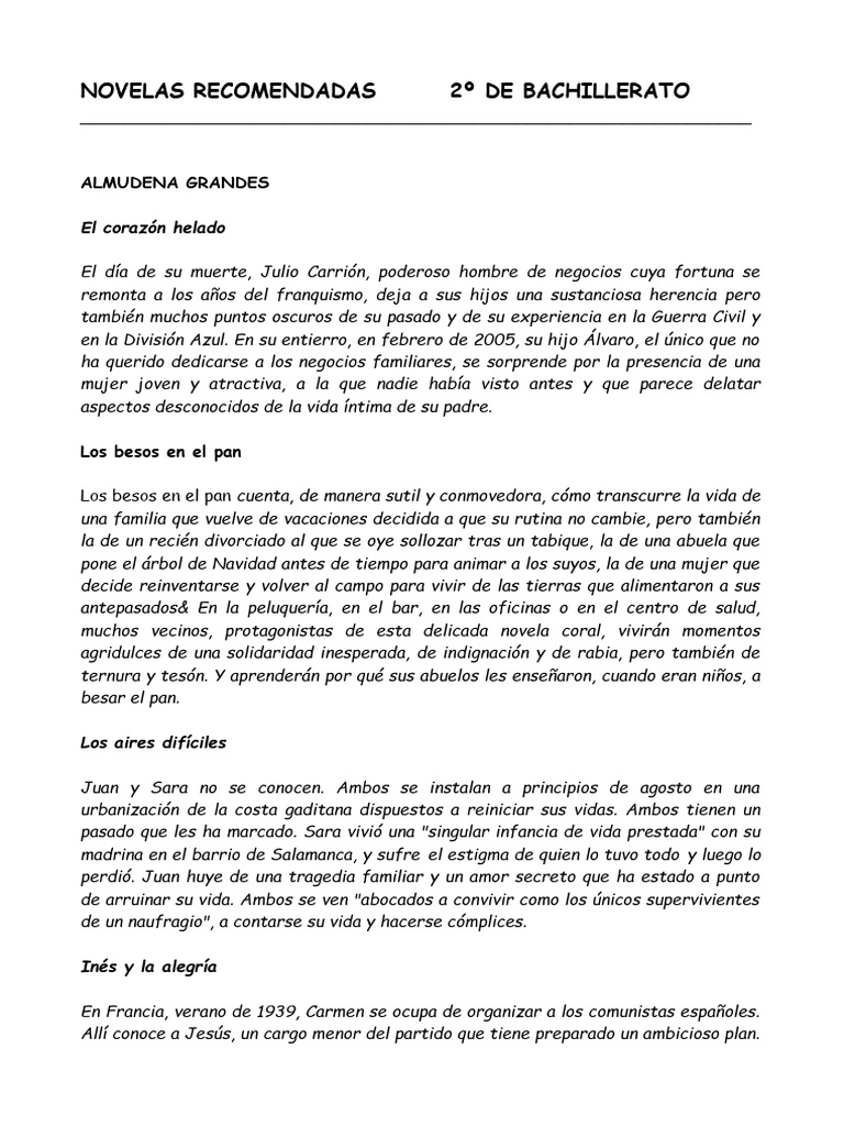 NOVELAS RECOMENDADAS 2º DE BACHILLERATO