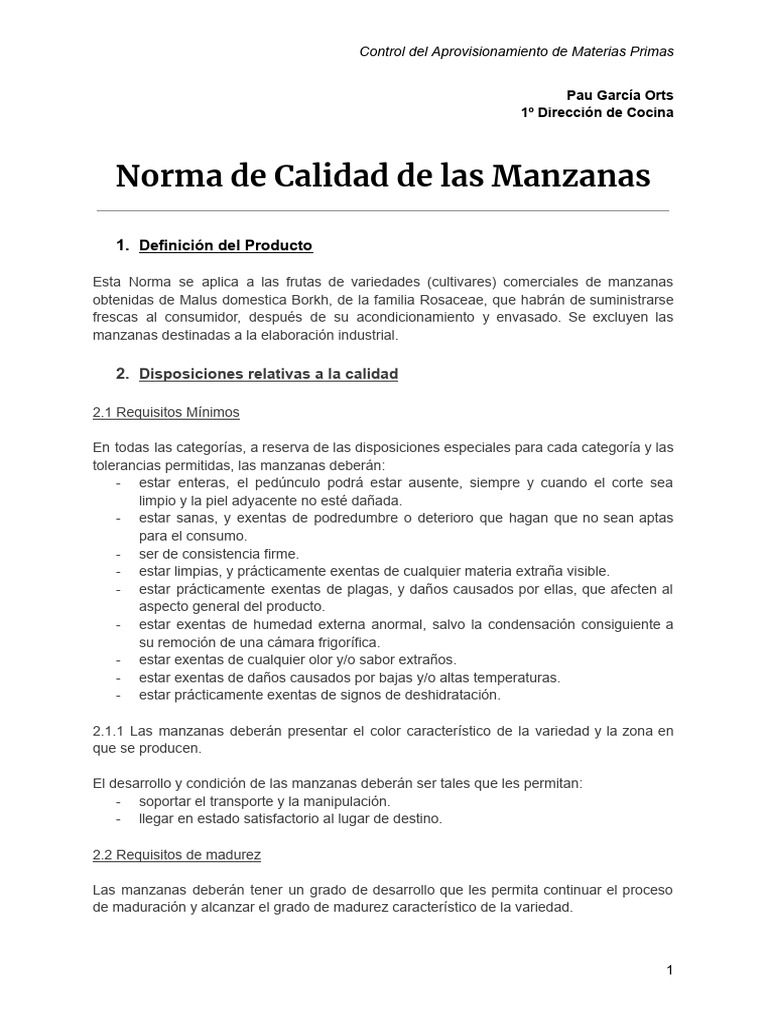 Norma de Calidad de las Manzanas