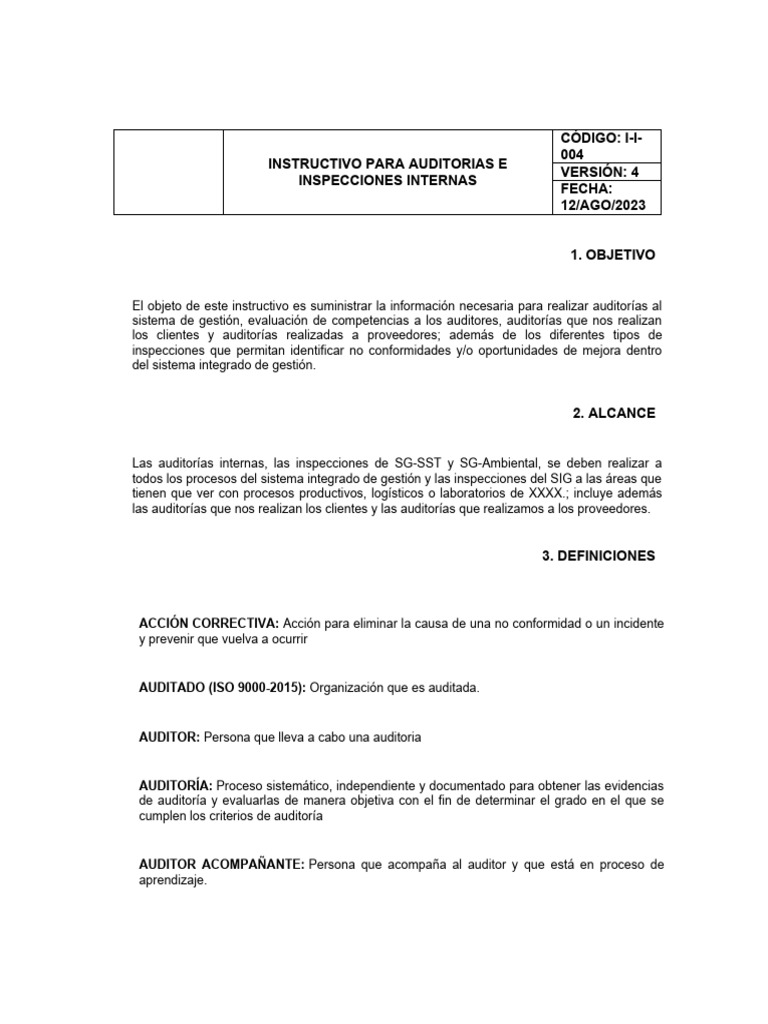 El objeto de este instructivo es suministrar la información necesaria para realizar auditorías al