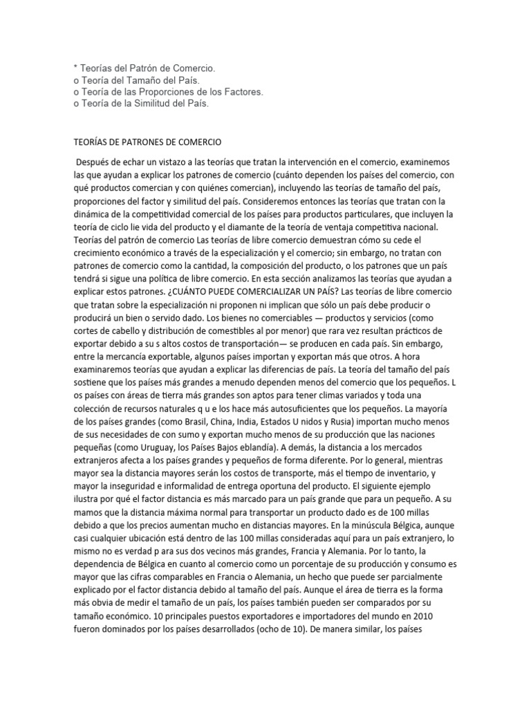 Teorías del patrón de comercio Las teorías de libre comercio demuestran cómo su cede el