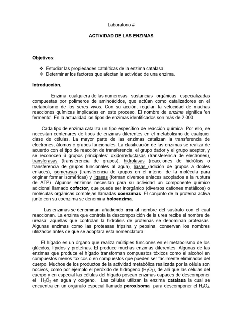 Actividad enzimática sesión 1 Catalasa: [Link]