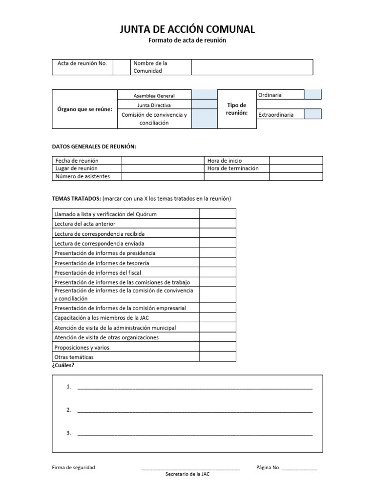 Esta acta hace parte integral del libro de actas de la junta de acción comunal. Para su constancia se firma el