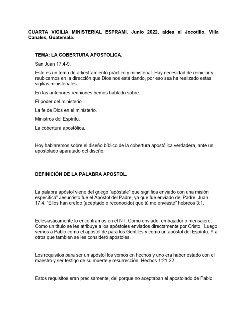 espiritual, como también ministerial apostólica. La cobertura apostólica es espiritual no
