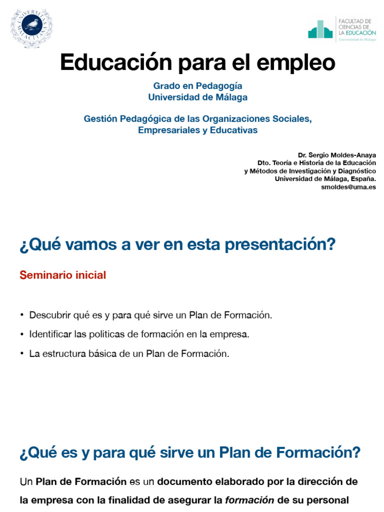 Un Plan de Formación es un documento elaborado por la dirección de