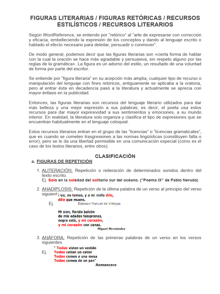 FIGURAS LITERARIAS / FIGURAS RETÓRICAS / RECURSOS