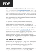 Ethernet designa a una tecnología que permite que los dispositivos de redes de