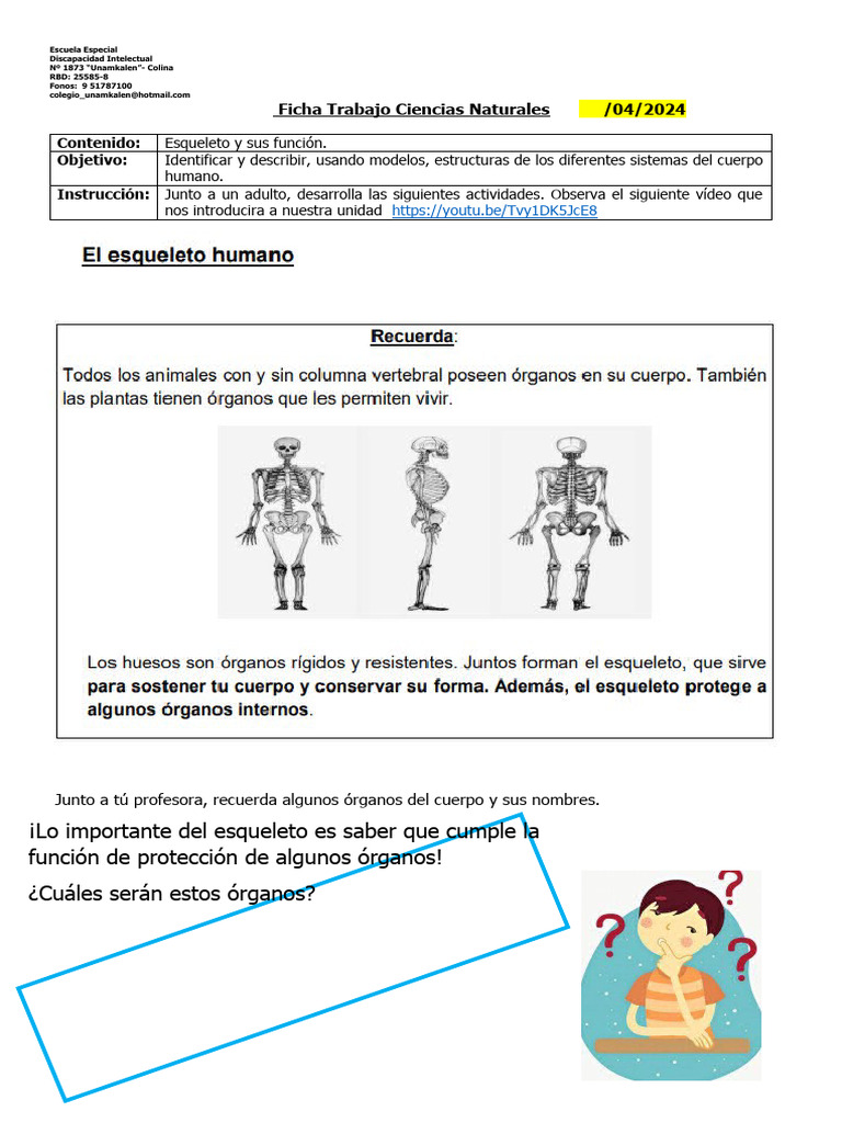 Observa y comenta algunos órganos que protege nuestro esqueleto.