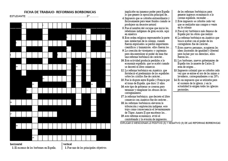 FICHA DE TRABAJO- REFORMAS BORBONICAS implicaba un inmenso poder para España de las reformas borbónicas para