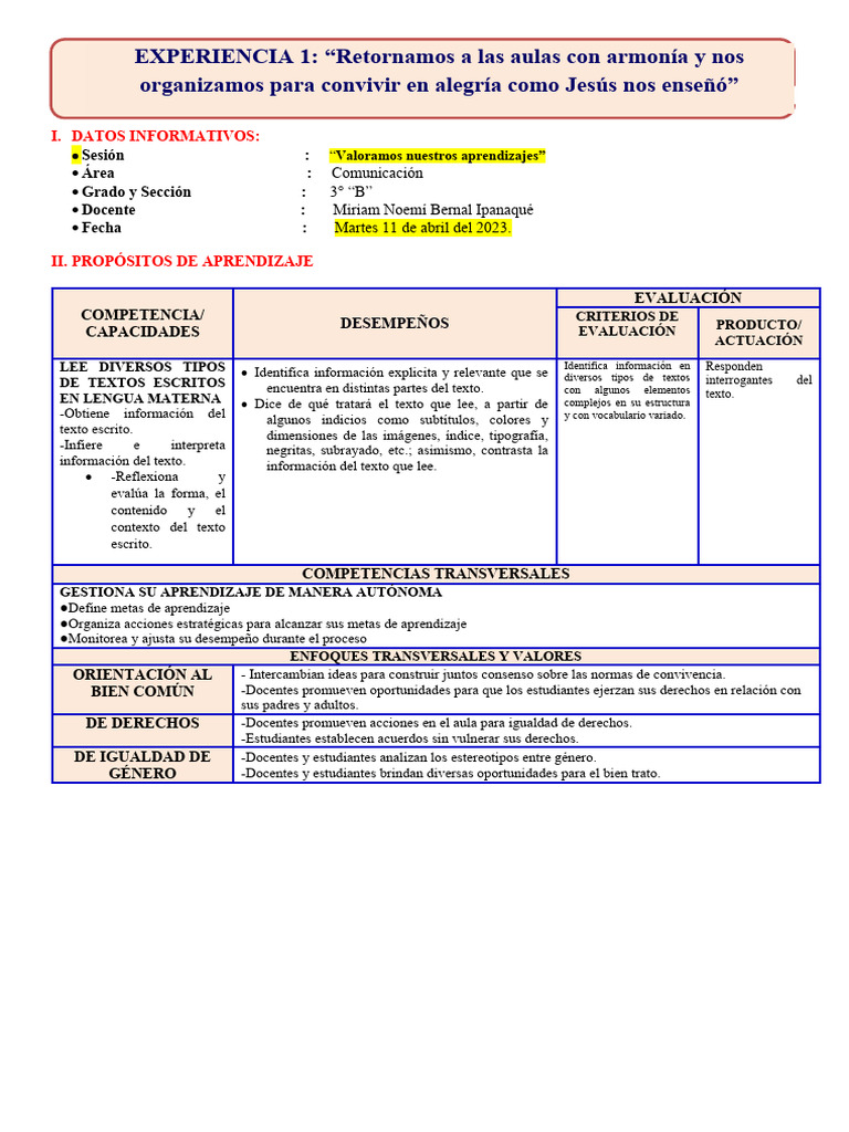 EXPERIENCIA 1: “Retornamos a las aulas con armonía y nos