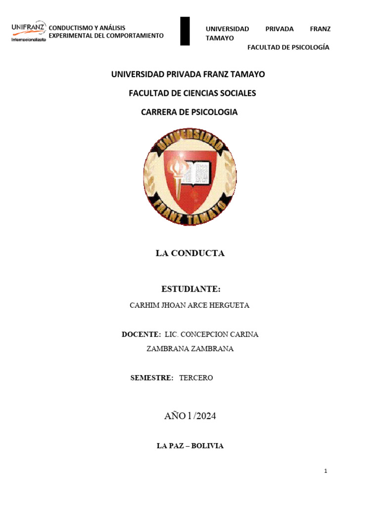 CONDUCTISMO Y ANÁLISIS UNIVERSIDAD PRIVADA FRANZ