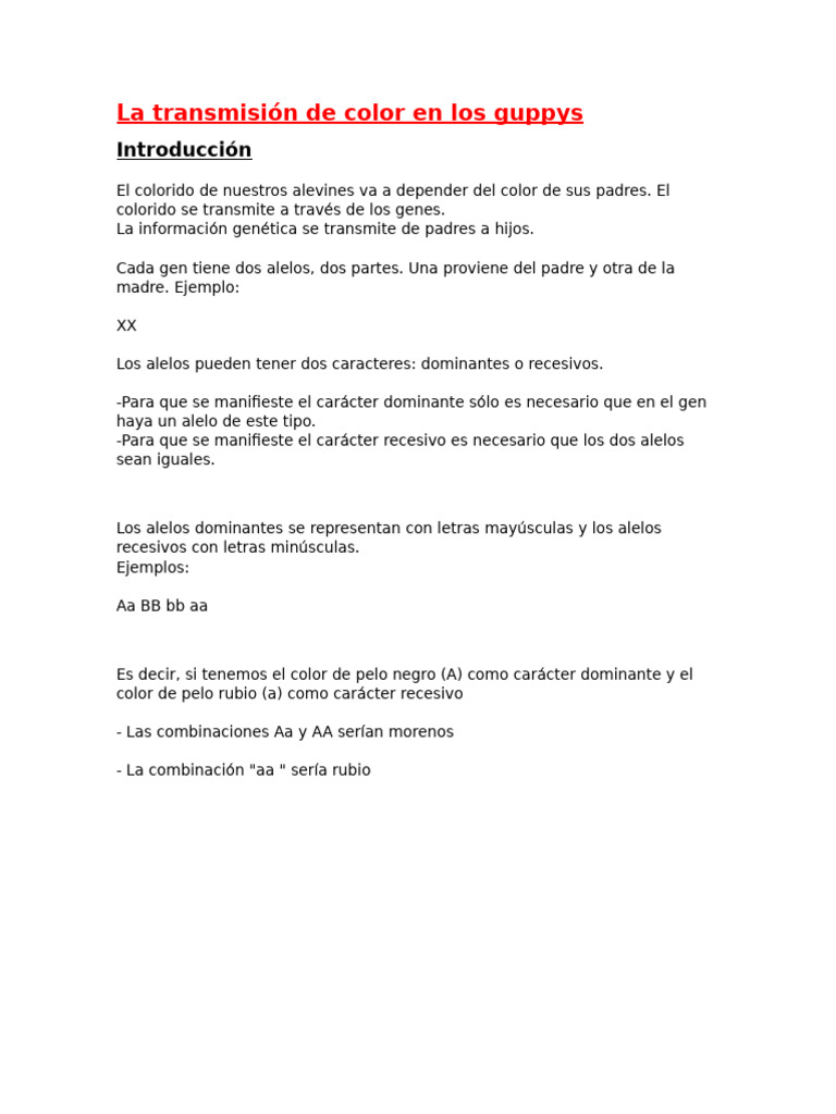 2º- ¿Cómo puedo obtener guppys que presenten un color