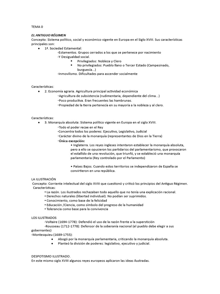 Concepto: Sistema político, social y económico vigente en Europa en el Siglo XVIII. Sus características